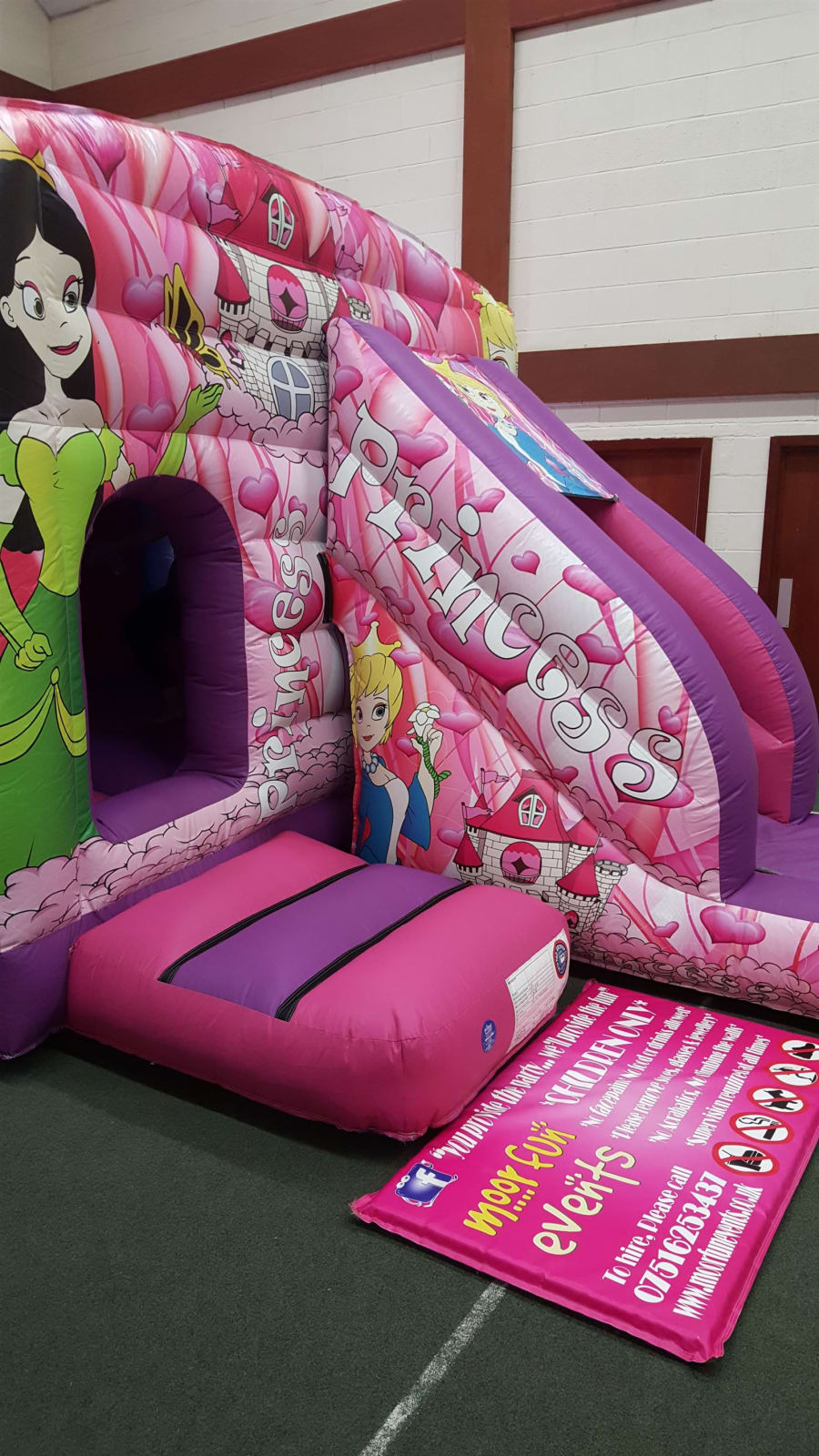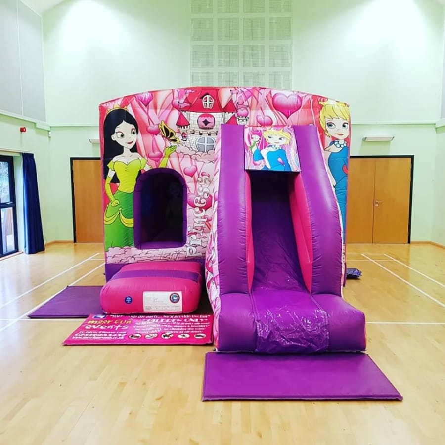 Here is the newest edition to the moorfun events family. It's our princess front slide bouncy castle. It's amaizing!!! Please note we do not Allow facepaints or glitter tattoos on our inflatables. If you would like to turn into a package with a pink ballpool and pink or purple didicars or happy hoppers then please ask when booking. we do NOT allow facepaints on our inflatbles.