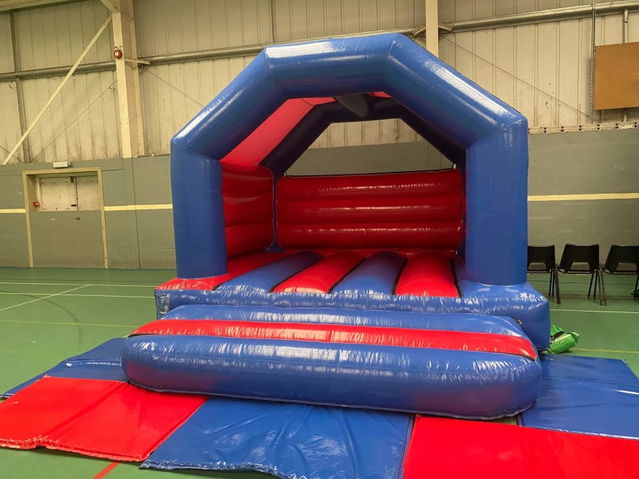 Children's outdoor bouncy castle Red and blue. This bouncy castle is great for a garden party, wedding, birthday or a bbq, This is our smallest castle but is just as much fun as our biggest. We hire around Newton Abbot, Torquay, Paignton and exeter areas. This bouncy castle is perfect for children in the garden or in a hall. This castle will hold about 6-8 children at a time.