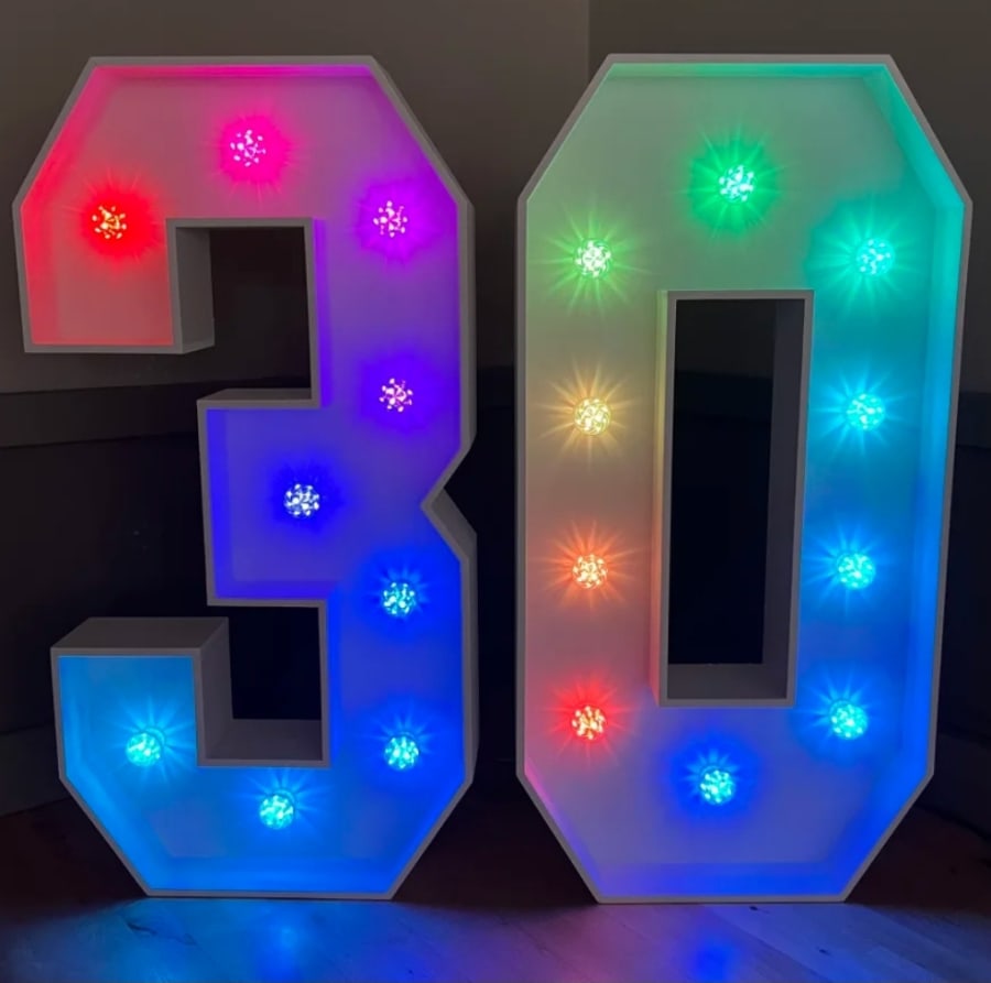 Light up number 30 — Colour Changing, 4ft Tall ๐