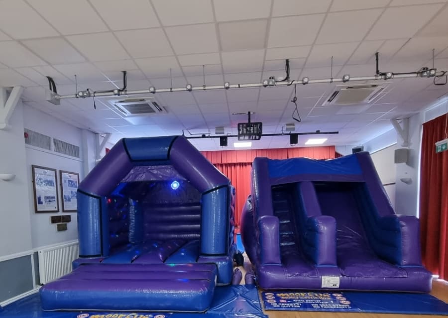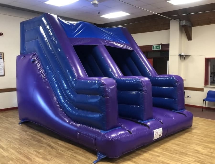 Looking to add a splash of color and excitement to your event? Our vibrant purple and blue bouncy castle (Disco and velcro artwork) & slide package is just what you need! Perfect for children's parties, family gatherings, or community events, this package is your ticket to an unforgettable experience. ๐