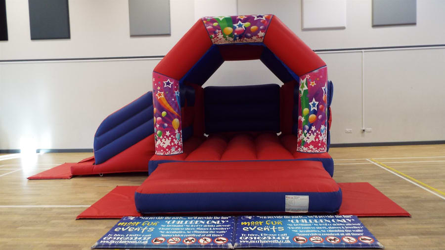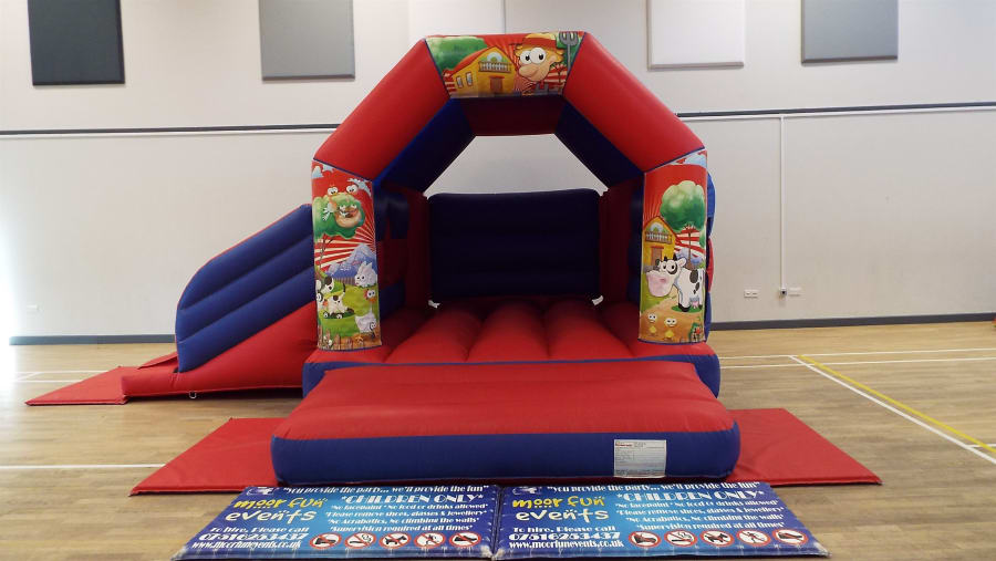 Here is our blue & red bouncy castle with Slide that you can attach any of our themed Velcro artworks too. This is perfect for any birthday party or celebration as you can put any theme on any castle. You can also add Soft play and a Ball pool or didi cars or happy hoppers and make it a package.you can also add disco speaker and lights for £10 extra Please see artwork list below. You can also visit our Facebook page for more pictures