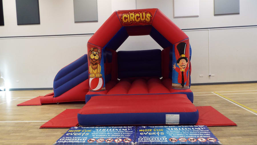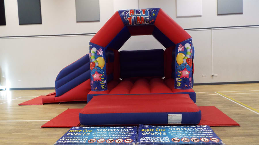 15(L) x 17(W) x 9.6ft (H) bouncy castle in red and blue with slide