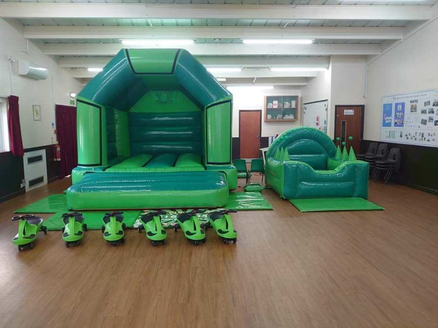 Bouncy castle hire Green standard bouncy castle, ballpool, 6 didi cars in Newton abbot, Exeter, Torquay, Paignton, Chudleigh, Bovey Tracey is a compact, high-impact party solution. This ready-to-go set combines a green standard bouncy castle, a matching ballpool and six didi cars or six Happy Hopperz for small riders. It’s ideal for birthdays, family gatherings and community events. ππ°π’